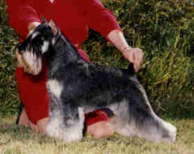 Wil is a Canadian and multiple American group winner. He was ranked number 4 Miniature Schnauzer in the USA in 1988, Schnauzer Shorts System. Wil is the sire of 10 Canadian Champions, among them 3 group winners, 2 Best Puppy is Show winners and most with Best Puppy in Group wins and/or group placements. At 14 years young, Wil is no longer at stud.