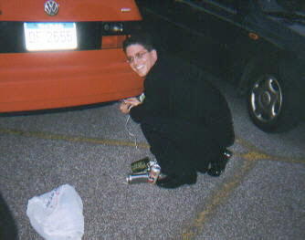 "Autumn and Sig decorating the car"