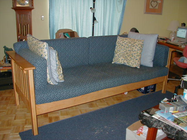 The settle measures 34" tall, 34" deep, and 84" wide and is is