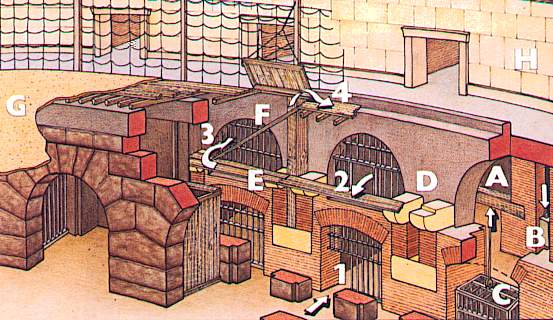 在場內按階級有四層座位,中間表演場有一間一間的地下密室,上面鋪上木板,表演便木板上進行,現木板已完全不見,只有地下密室。地下密室便是關野獸的的獸欄,他們藉由絞繩鐵欄將野獸運上與人博鬥。在公元80年的開幕那場,就有9千頭的野獸被殺,表演至少進行至公元523年才被禁止。