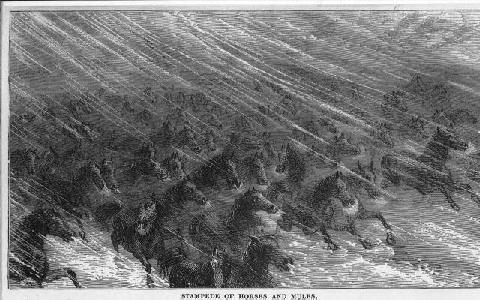 Captain Marcy's herd of 300 mules had broken away at the first approach of the storm and had run with the wind for up to forty miles, some of them ending up as far south as Autobees' settlement on the Huerfano River. The three Mexican herdsmen who had followed them had become exhausted and lost on the prairie. One herder had managed to find his way back to camp; another - when found - was delirious, crawling about on his hands and knees in the snow; the third had frozen to death and, according to Dubois, was brought back to camp and buried on Black Squirrel Creek.