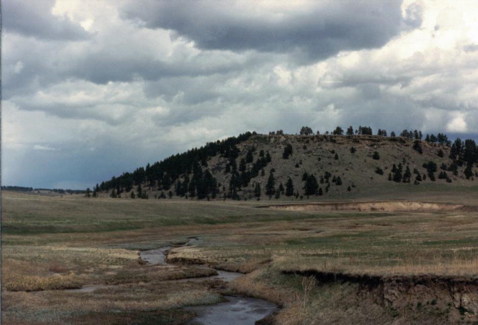 The next morning the supply train started early. They headed east across the hills to intersect the Cherokee Trail above Jimmy Camp.  On reaching the high prairie they were able to see Colonel Loring's troops about ten miles ahead of them.  Expecting that the troops would encamp on Black Squirrel Creek at the edge of the trees, the supply train pushed on through the mud and buffalo grass, reaching the creek about 1 P.M. on 29 April.  Colonel Loring had not waited there, but had followed the trail some seven miles north, and gone into camp along West Kiowa Creek near a hill known as Point of Rocks.