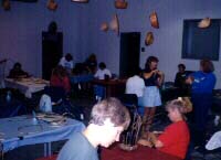 mats...again led with great patience and skill by Doug and Cyndi. Thankfully we didn't have to venture into the swamps to gather the leaves - but only because they required a long drying time which would not fit into our schedule. So Doug brought these leaves which were ready for our use. Now, we only thought that working with the kudzu was tough! We soon learned that it had been a breeze compared to cat-tail leaves, which although had to be dried, required constant "watering" while being woven. Most of us decided to make hats from our cat-tails and I, for one, will proudly wear my hat next summer when walking on my beach!!![]()