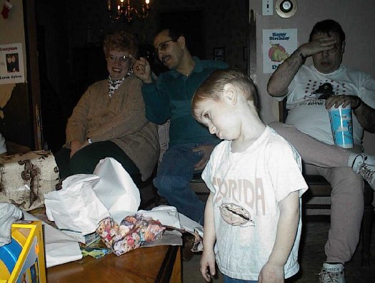 No more presents? (left to right: Aunt Pat, Uncle Fred, me, PopPop)