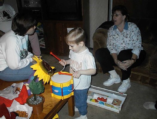 You sing, Flower! I'll play the drums! (left to right: Mommie, me, Aunt Laura)