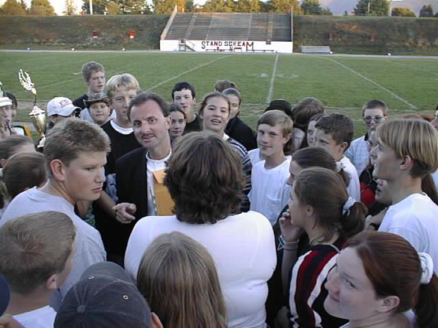 Band crowds the Director after the Festival