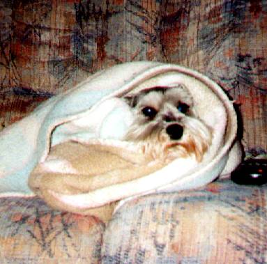 All wrapped up in a nice cozy blanket, just as she likes it :)