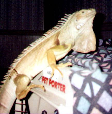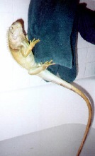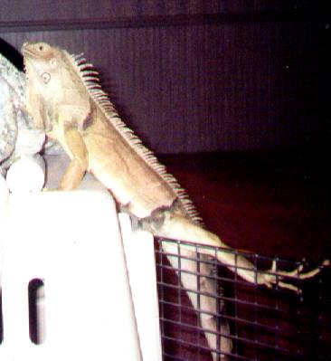 This is Fuzzers , our beautiful Iguana. He is really quite the character ! He's much bigger now than in these photos and his color has changed a little bit.