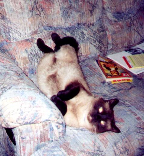 Hangin' out on the couch watching t.v & giving me an evil look for putting the camera in his face.