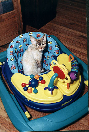 Pixzy trying out Viloet's new walker.