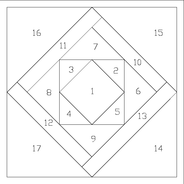 Ginger's Quilting PagesIn order to speed loading times, these geometric patterns have moved to their own page! Below you will find paper piecing patterns for geometrics and for some traditional quilt block patterns. As always, I haven't done any research to see if something similar exists. So please use these for your own quilting pleasure only! Also as usual, I have tried to put up a lot of 6" ones, as I love that size block, and haven't seen too many floating around the Net.