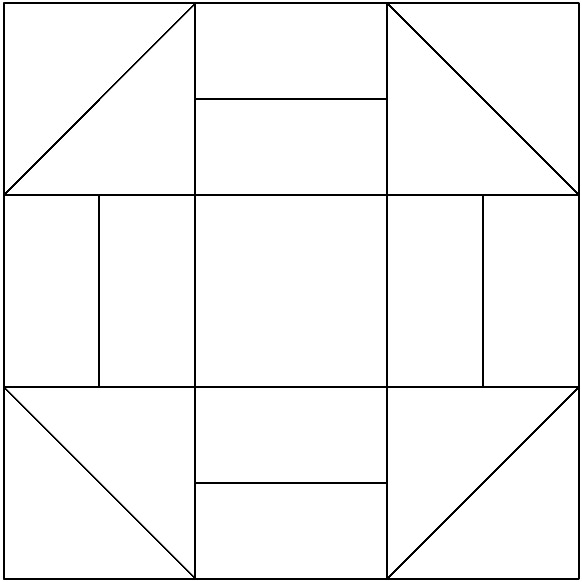 I drew all of these. Some are classic patterns and probably are well known, many with these and other techniques used to assemble them. Others are not ones I have copied from anywhere, but I haven't done any research to see if something similar exists. Still others are simplified variations on classic patterns. So please use these for your own quilting pleasure only! Please check back occasionally, as I have the best intentions to add patterns to the site.