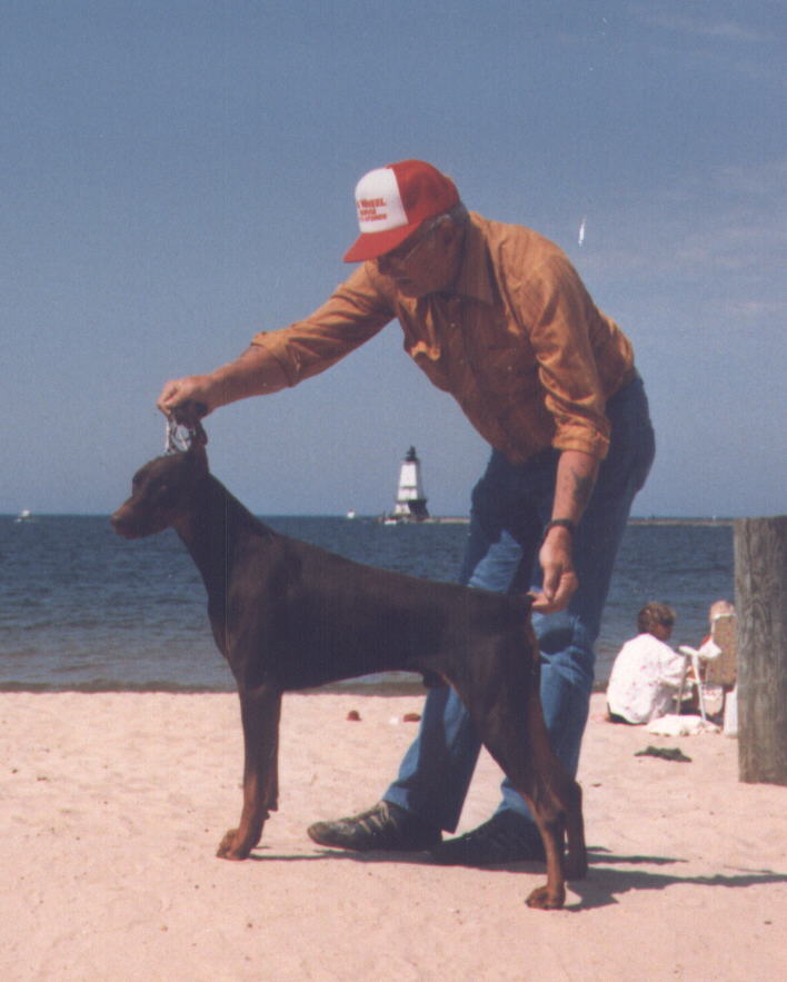 He has two dobersisters who Jeanette says can be witchy, trying to get him in trouble, but they do love him and plaster him with doberkisses when he comes home if he's been out.