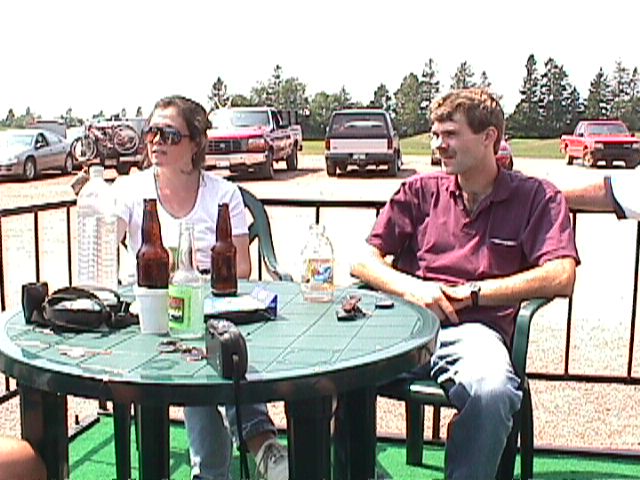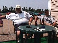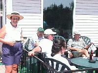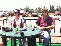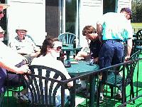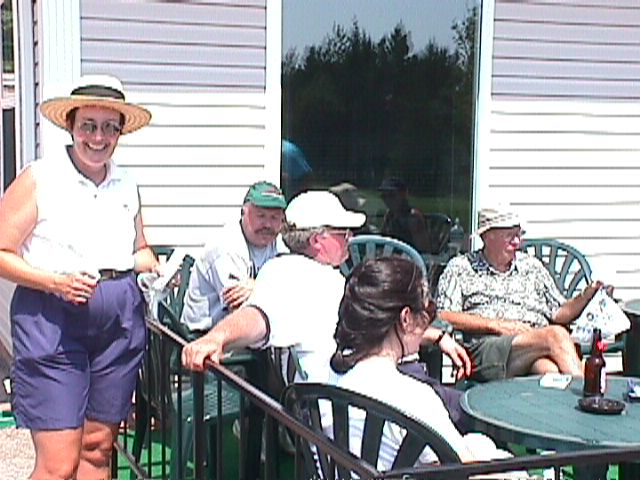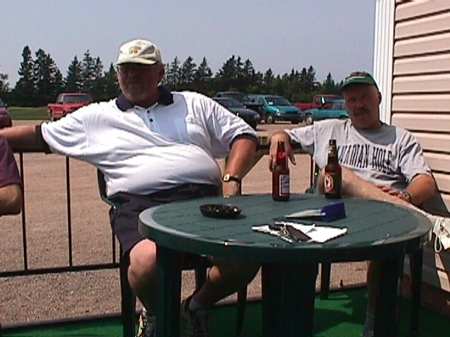 Having a cool one at the clubhouse.