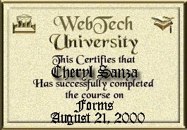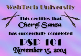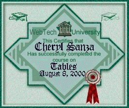 My first three awards actually are not awards but diplomas from WebTech University I was so lucky to have the same instructor for both the Tables Class and the Forms Class. My instructor's name was Kris and here is an award that she gave me for visiting her own site. This award is from a new friend I found today. Please visit Cindy's site. Well that is it for now. I feel so blessed just to have been given these gifts. Thank you. I said a prayer for you today and know God must have heard. I felt the answer in my heart although He spoke not a word. I didn't ask for wealth or fame (I knew you would not mind). I asked for priceless treasures rare, of a more lasting kind. I prayed that He'd be near you at the start of each new day. To grant you health and blessings fair, and friends to share your way. I asked for happiness for you in all things great and small, but that you would know His loving care I prayed for most of all. Background design from