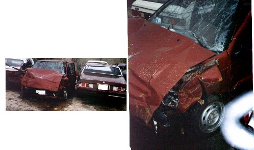 The first three pictures are of my car. The front end is three feet shorter than it should be. This is what careless driving causes.