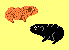 black with comical eyebrows (left one is white), and orange with tufts all over