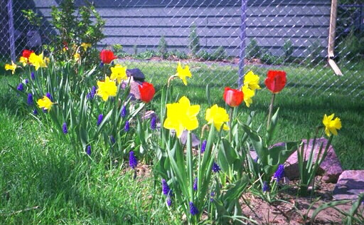 In the fall of 1996, I bought over a dozen tulip bulbs from my niece. They were planted in the front yard and were so beautiful when they bloomed. They didn't last very long, but I was told this beforehand. See my daffodils and others in 1998.