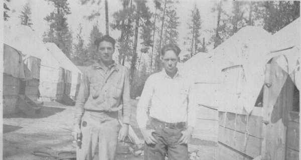 This photo was taken C. 1930 and is of Bart Belcher and Dan Dana. It was taken in a logging camp in Washington State.
