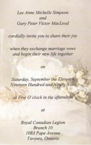 Leanne Simpson, Bride Gary MacLeod, Groom Kathryn McLean, Maid of Honor Shane Baker, Best Man Rev Dennis Robinson, Minister