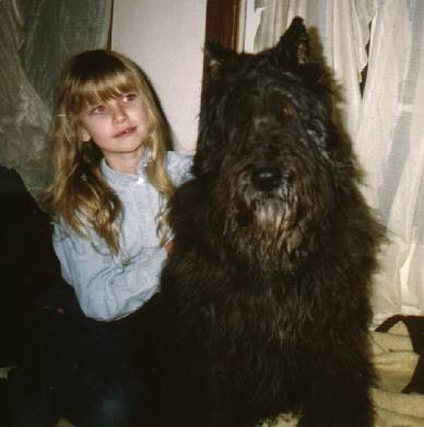 Jackie, was a rescue I was only supposed to foster. She had been hit by a car & left for dead in March of 1994. A Kind lady stopped to move her off the road & discovered that she was alive. The lady called the Bouv rescue to ask if we would take her. Upon a vet exam is was discovered that Jackie was at the very least 10 years old. She also had some long term health problems. So My Husband & I decided to keep her ourselves & let her live out what ever time she had left with us.