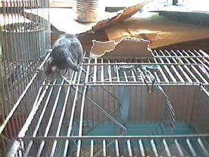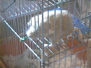 | Pookie's hopping out of his cage.