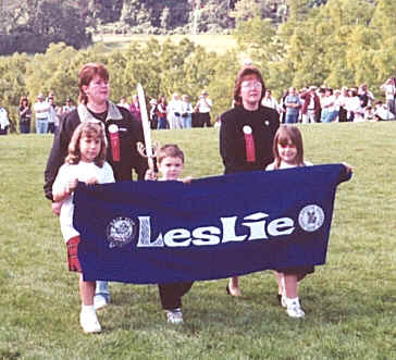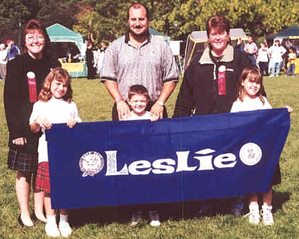 Here we are lined up for the Clan Parade. B=>F, L=>R: Leslie Seich (myself), Wayne - my husband, Linda Fox, Karlee Schuster, Drew Seich, and Sara Seich.