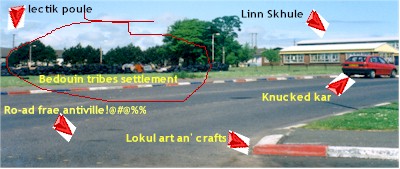 Those o ye that live in Craigyhill, an lets face who disnae these days, wull kno aal aboot thu majir renovations that are goin' on roun the shaps...an that. For aal those noo livin abroad, some even by choice, an aal them "Ethnic Craigyhillians" oot there we hae knock'd tigether a wheen a pictures showing ye how the hills goin' tae look in the future. Note that despite it aalmost bein' the year 2000 McGregors hae not yet replaced their big black bike wae a wee lad in a jet pack delivering whole loads a shoppin in the form o single tablet as everyone predicted they wood.