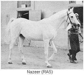 | Nazeer-r 1934 grey horse Bred by Royal Agricultural Society, Egypt Race Record Foal crops 1950 to 1960, all in Egypt
