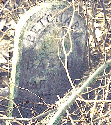 Betchaba, the youngest daughter, and one of the five children that died young, died at the age of two. Her tombstone is shown below. (Photo taken in spring of 1998. Courtesy of Glenda Bastin. Thanks!)