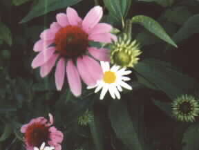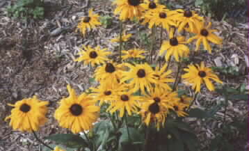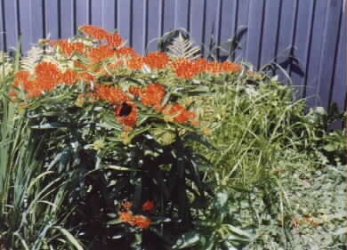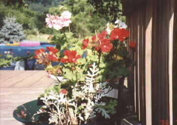"My Back Yard" Today is June 18, 1998. My backyard goldfish pond is officially finished. It is gorgeous and I feel so at peace sitting, watching, listening and meditating. The pic's will be uploaded soon. We have had so much fun making the pond. I hope you enjoy it as much as we do! I sit on this swing and drink my coffee and ejoy the many sounds of Nature. I have many wind chimes, made of pewter, I've collected them for several years. One of my favorite things here in the back yard is my wildflower garden. I have humming birds that visit me often. These butterfly flowers are known as butterfly weeds grow wild here on the farm. If you look closely, you will see the butterfly on the flowers. I now have some hybrid butterfly bushes. Soon their pic's will be proudly displayed! These blackeyed susans also grow wild on the farm. Cone Flowers and Daiseys. These are also wild flowers. Some say the dried cornflowers can be used for medicinal purposes...but I've not tried it..*s* Lilies. At the time I only had a couple day lilies...now this particular spot has several different colors. Soon a pond will be added to this spot. Java Red Wegala bush and Snowball The flowers in front of the snowball bush is known as a blue marsh iris. I have these in my pond and thru out all of my gardens. The snowball bush was given to me by a wonderful gal, she knew I had been looking for one of these, I remember my Mother had one on our farm. I wanted one as well. Now thanks to Delores I have it...Thanks Dee! Now I am looking for a White Ash....If anyone has one of these rare bushes, please let me know...they're hard to find. A mini garden on my back deck. We have 40 acres of land, and I still have to put mini gardens on my decks. *s* I also like this little spot by my blue spruce. These tress were only about 12 inches tall when I put them out. My My!!! They have grown into such beautiful adults. This is one of my most recent flower beds. The white birch is very young. Jim and Sandy gave it to me last year. We had a flood this year much worse than the 1996 flood. It was time for another face lift in my yard. I made the wooden girl...and her name is Carrie. :-) If you have the time before you leave visit the barn and maybe you will see John's garden. If not come back soon to look around. Barn & Garden My Awards LOTH My Backyard Rock Garden Photos Poetry A True Story Links. My family Friends Ode To Joy My Mother A Love Story Snowy Day Garden & Barn About Me! Help Valley Honor Page My DownUnder Connections More Poetry John's Writings John's Hangout Granddaughters Page Flag Day My Special Awards Holiday Pages! Christmas in July My Pond Tour! Nat. Childrens Mem. Day T's Pond Page! Verna's Gardens Webrings