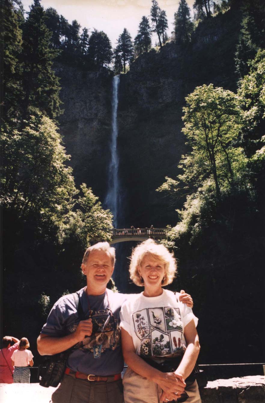 Bonnie's father, Ed Bentley, and his girlfriend, Val Rainey, both of Westfield, Mass., during their 1995 visit to Multnomah Falls in Oregon.