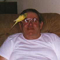 Carmine's father shows off his talented parakeet named Peanuts.