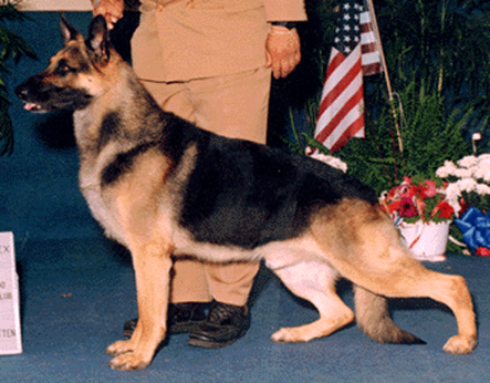 1997 Hero Dog Award presented by the German Shepherd Dog Club Of America. Apache is championship pointed and is being campaigned right now. He is also standing at limited stud. Please contact me for further information. Click here to see his pedigree. |