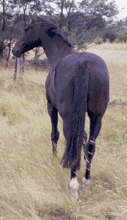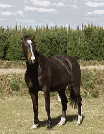 Hope foaled a lovely bay colt foal "Banjywon Legolas" by Quabin Sariq on January 24th, 2003. Disaster struck early as "Legs" somehow ended up caught in a fence at only a couple of hours old - thus again proving if there is a way a horse can hurt it self it will! Anyway - after several weeks of bandaging all was well. Apart from some scarring Legs is up and running, literally! And is everything I could hope for. He will be around 15 hands and with plenty of bone should be an excellent weight carrier.