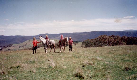 Al during the lunch break whilst leading a 3 day ride at Gelantipy. Mitchell aboard and friend Tee with Tiffany on Kiah.