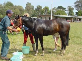 Quin being strapped at Briagalong 2002 90km for a successful completion.