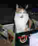 The Vet wanted to make a file up for her and asked us what her name was. We replied that she was a stray and we were not going to keep her, so the Vet just wrote "NEW KITTY" on the folder and..........yes, you guessed it! We still have her and her name is NEW KITTY. New Kitty seems to be my cat. She is very very cuddly. She is a long haired black and orange cat - very elegant. Whenever I sit and watch TV, she is in my lap! There is nothing like a warm cat on your lap on a cold winter's evening! New Kitty loves to ride in the car up to the cabin and she also likes to sit on the dock and boat.