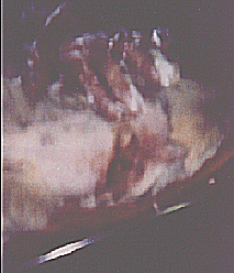 This last photo shows the conibear trap with Blessed Hope's flesh on it.