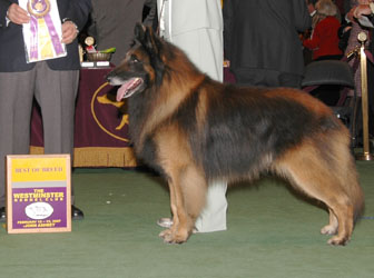 Moraine member at 2007 Westminster Kennel Club Dog Show Pictured is Jeep (Ch CT O Tahn Agon Cinema Duet), a Belgian Tervuren and owner/handler Beth Walker (or Beth's legs, anyway!) when Jeep took Best of Breed at Westminster on February 13th, 2007. Beth served as Moraine's first vice president, and Jeep is the first dog with a CT title to win Best of Breed at Westminster and the first Best in Show winning CT. Congratulations to Beth and Jeep on a fine showing!