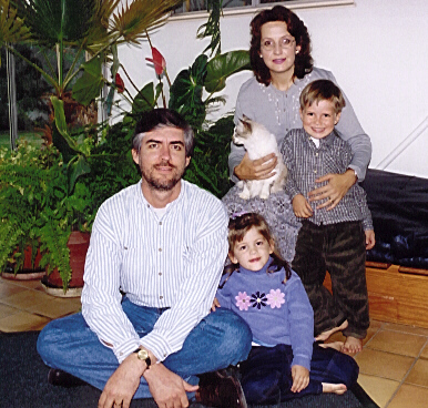 Family photo taken mid 2000 - with Wollie, our 11 year old domestic Cymric pet. |