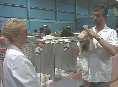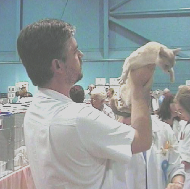 Handling a Pixie Bob at a show in Pontoise, Paris - December 1997. |