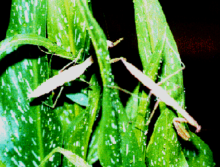 Here's a picture I took with my digital camera. It has a macro feature. This pic was taken when it was completely dark outside. I had gone outside to water the potted plants and noticed my little friend there on my Liatris plants, which are inbetween my Calla Lilies.