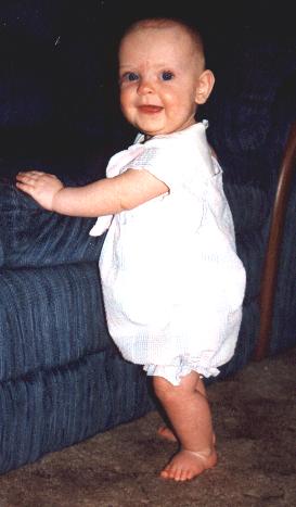 Meghan's favorite thing to do this month is point at things she likes - this time it was Mommy and Daddy!
