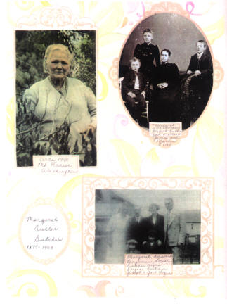 (upper left) My great Grandmother Margaret Butler Butcher born 1877 died 1963 (upper right) My great great grandmother Bridget Finley Butler with children (L to R) James, Margaret, and Martin(bottom right) My great Grandparents Benjamin and Margaret Butler Butcher with their children Loretta Butcher Hogan, my grandfather Eugene Butcher, and Loretta's sons Joseph and Jack Hogan