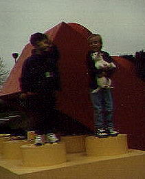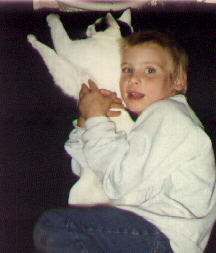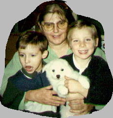 Kathy, Right-Connor, Kathy's grandson,Left-Chris, Sheri's grand. Chris is holding Max the American Eskimo puppy that he got from Kathy
