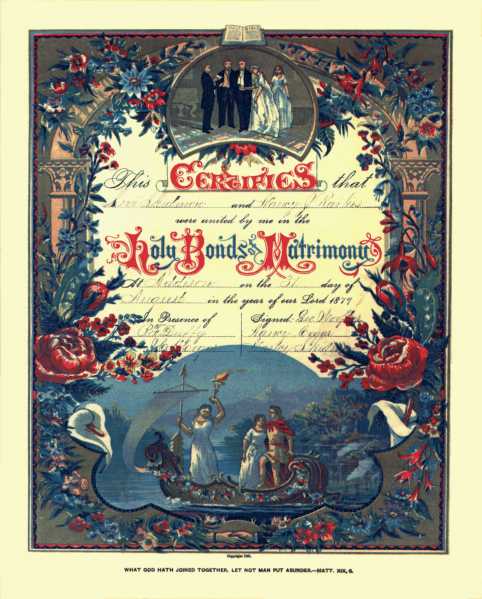 Marriage Certificate of Levi Skidmore and Nancy Raikes