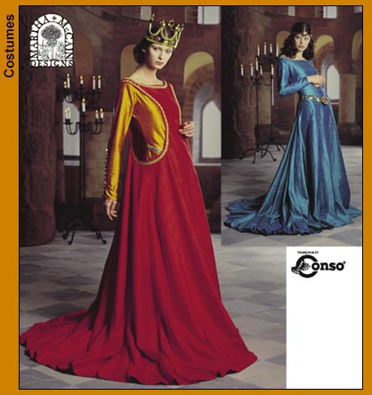 The BRIDE will be wearing a medieval-influenced dress, taken from Simplicity Patterns. The dress, which is being created by Heather's grandmother, Cecelia Moore, will be made from an ivory silk shantung. Heather will also be wearing a medieval girdle (belt) from Dragonpipes. The veil, also ivory, is handmade by Veils4U, with three tiers and a rolled ribbon edge. The headpiece, also being made by the bride's grandmother, is a Juliet cap with gold filigree trim. The bride will also be wearing her mother's pearl necklace.