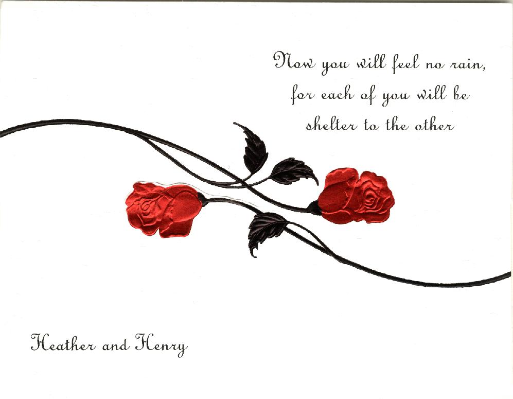 | This was our wedding invitation. The paper was embossed with little flowers and it opened where the two roses meet. |