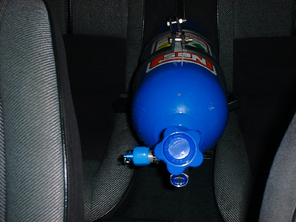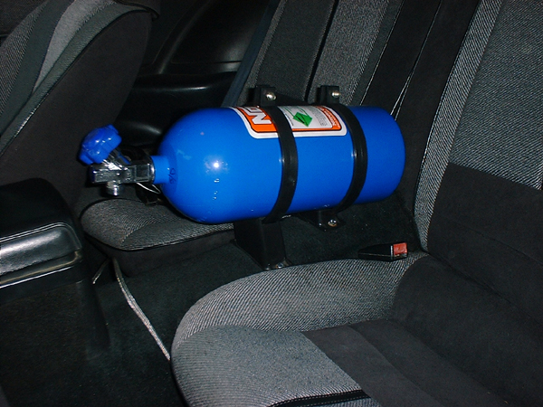 Well I didn't want to put the bottle out of reach and I really didn't feel like trying to back up the mounting bolts in the rear hatch compartment, so I decited to put it in a very convient place. Right behind be ...never out of reach